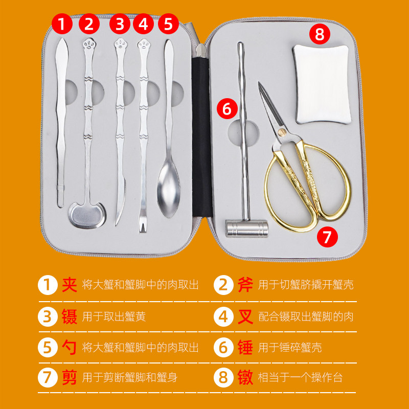 Crab eight pieces palace Yangcheng Lake hairy crab home eating crab artifact set vibrato tongs clamp eat crab dismantling tool