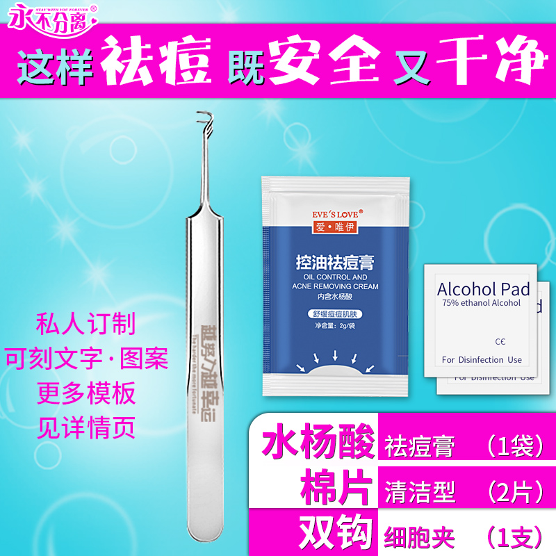 Stainless Steel Powder Lancet 1 Only 1 Bag Of Acne Removing Cream 2 pieces of cleaning sheet 3 Loaded Acne Cream Single Double Hook Cell Clip Delivery 6 Bespoke Lettering-Twin Hook Cell Clip for 6 Gift Concealed double