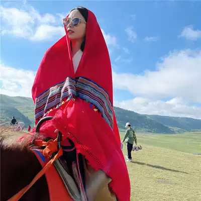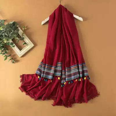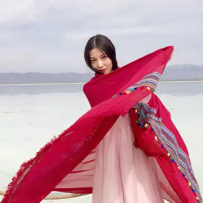 Silk scarf women Spring and Autumn desert tourism sunscreen shawl ethnic style tea card Salt Lake scarf Qinghai red scarf