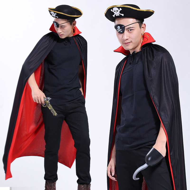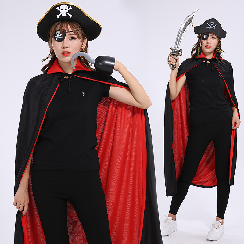 Black and red double-layer cloak Cloak Pirate cap blindfold earrings Knife cloak Pirate cap blindfold earrings Gun cloak Pirate cap blindfold earrings Hook cloak Captain's cap blindfold earrings