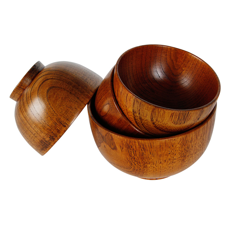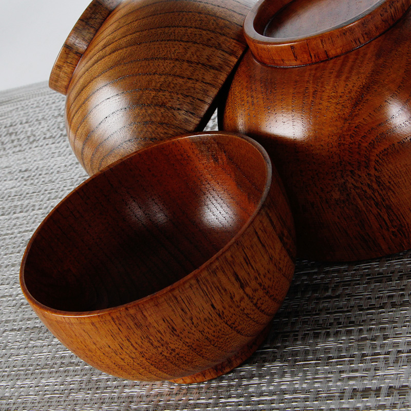 Murongshu family Japanese tableware Yuzuo wood bowl adult baby size Solid wood soup bowl anti-fall tableware