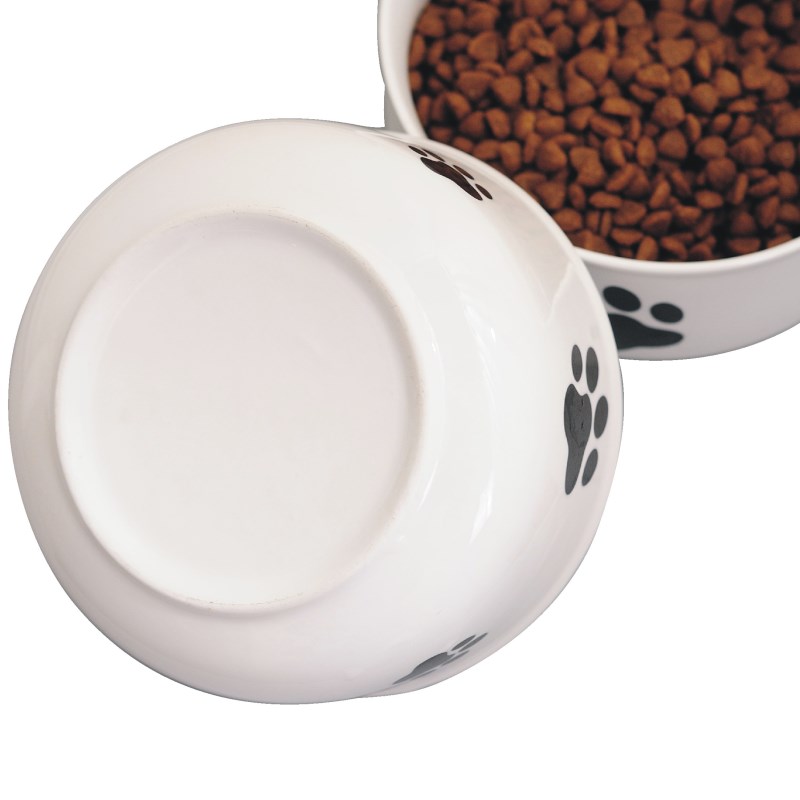 White bottom footprints single bowl white bottom Many cats single bowl