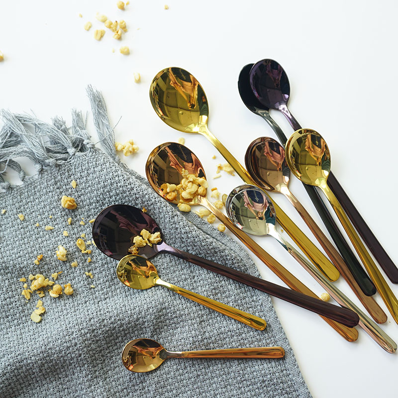 Main dining spoon (handsome and silver) main dining spoon (rose gold) sweet spoons (elegant black) charm purple long handle ice spoon coffee spoon (handsome silver) coffee spoon (charm purple) sweet spoons (handsome and silver) coffee spoon (excellent