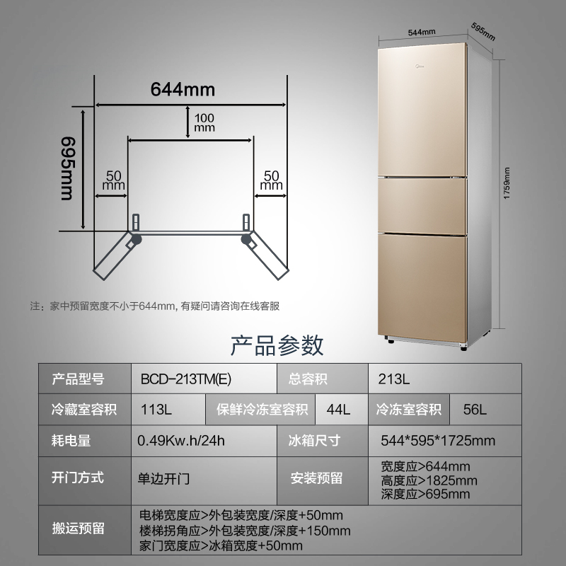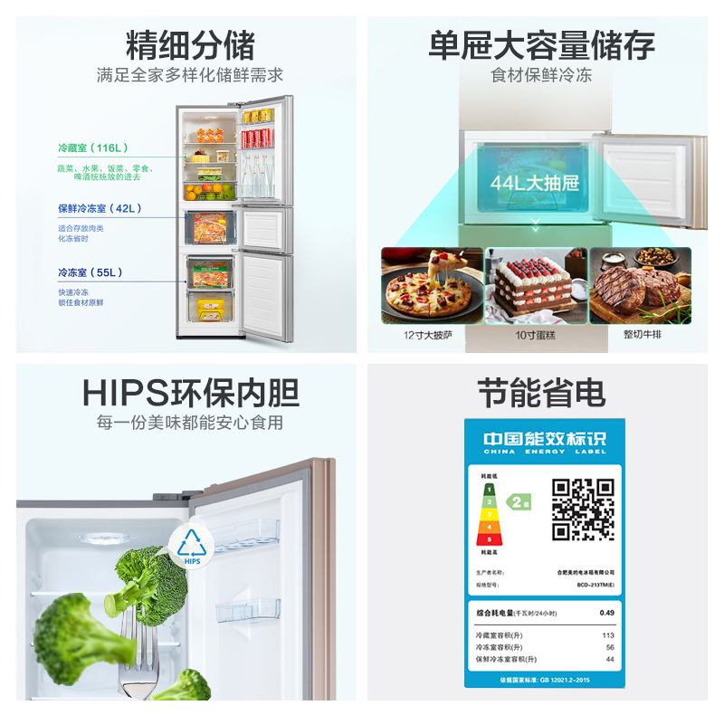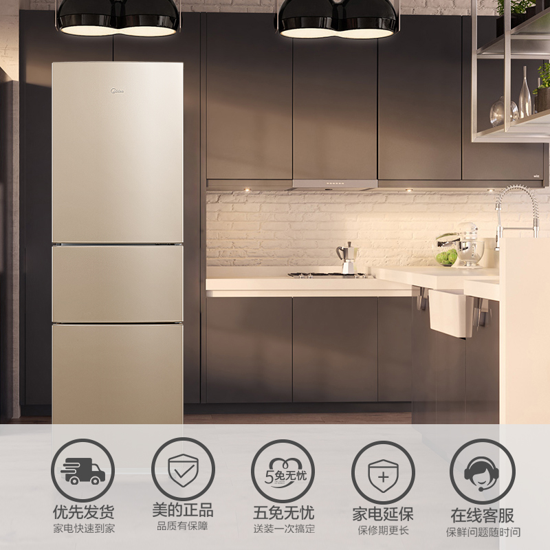 Midea 213 liters home three-door refrigerator small home rental dormitory energy saving you Xiaoice box