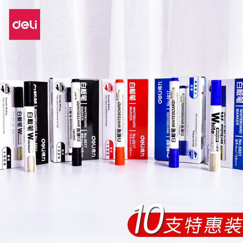 10 packs] Deli whiteboard pen black water-based erasable color red and blue blackboard pen office supplies stationery wholesale