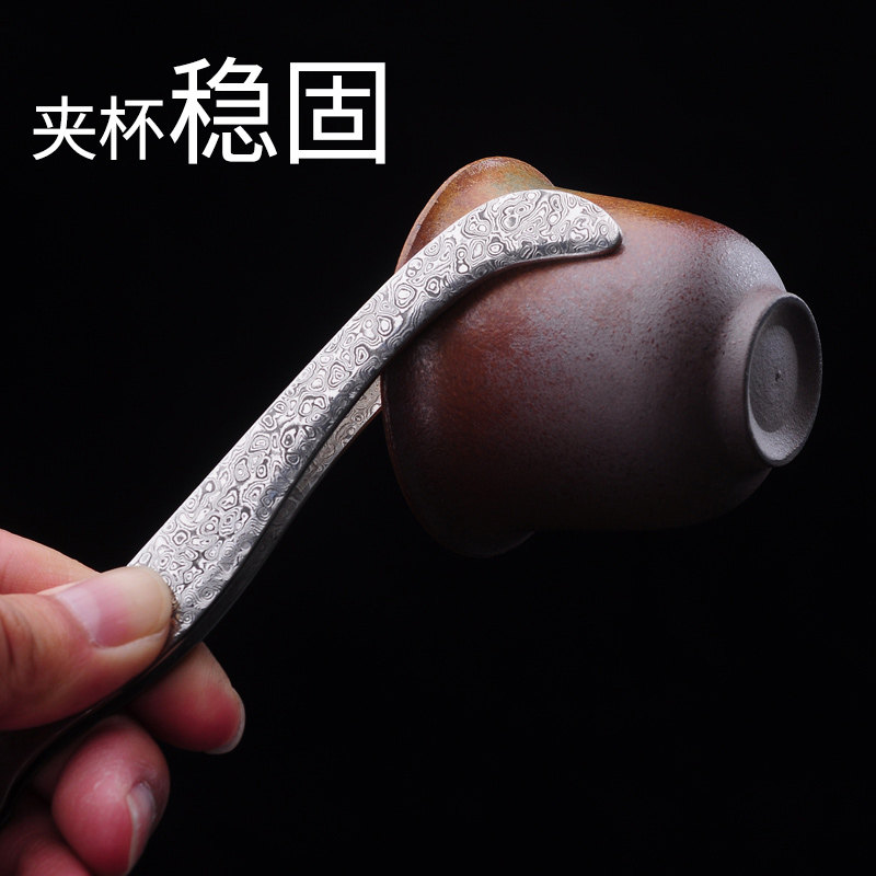 Damascus steel tea clip Kung Fu tea set tea cup clip tweezers stainless steel cup clip tea clip tea tweezers