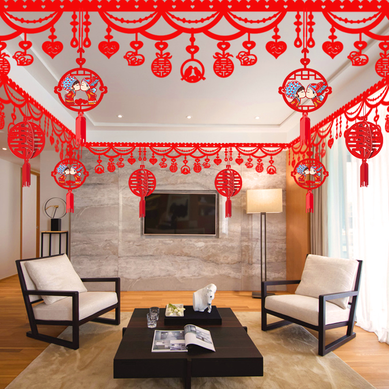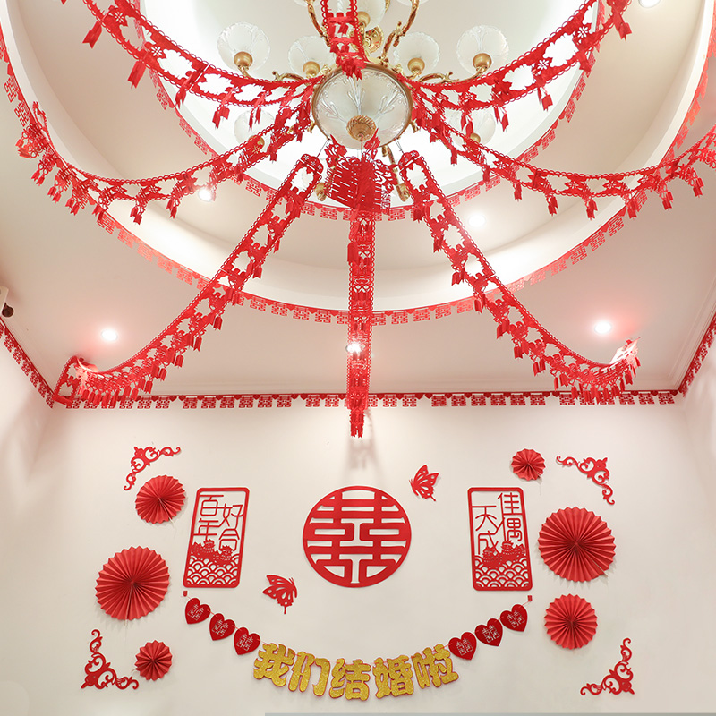 Wedding joy word pull flower hanging curtain wedding room decoration set supplies men's wedding pendant new room living room decoration hanging ornament