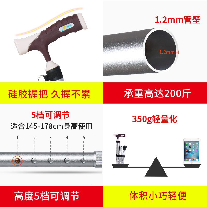 Old man crutch folded stick anti-slip small four-foot stick old man crutch single four-angle aluminum alloy cane