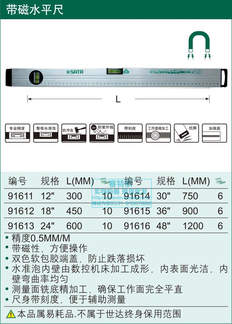 Seda 91601 aluminium alloy horizontal ruler 91602603 by foot 91611 strong magnetic balance ruler 91612 91613