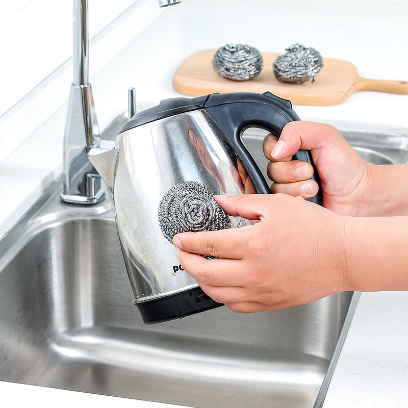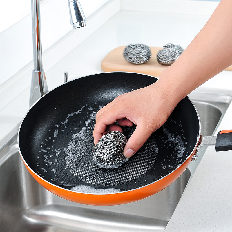 Stainless steel wire ball brush pot washing dishes with handle cleaning ball does not fall off wire brush pot ball kitchen stainless steel household cleaning ball