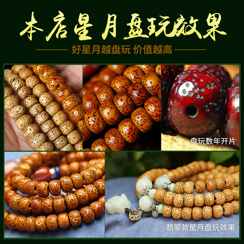 Wangchi Star Moon Bodhi Bracelet 108 New Moon Buddha Beads Shunbai Hainan Bodhi Necklace Men's Women's Bracelet
