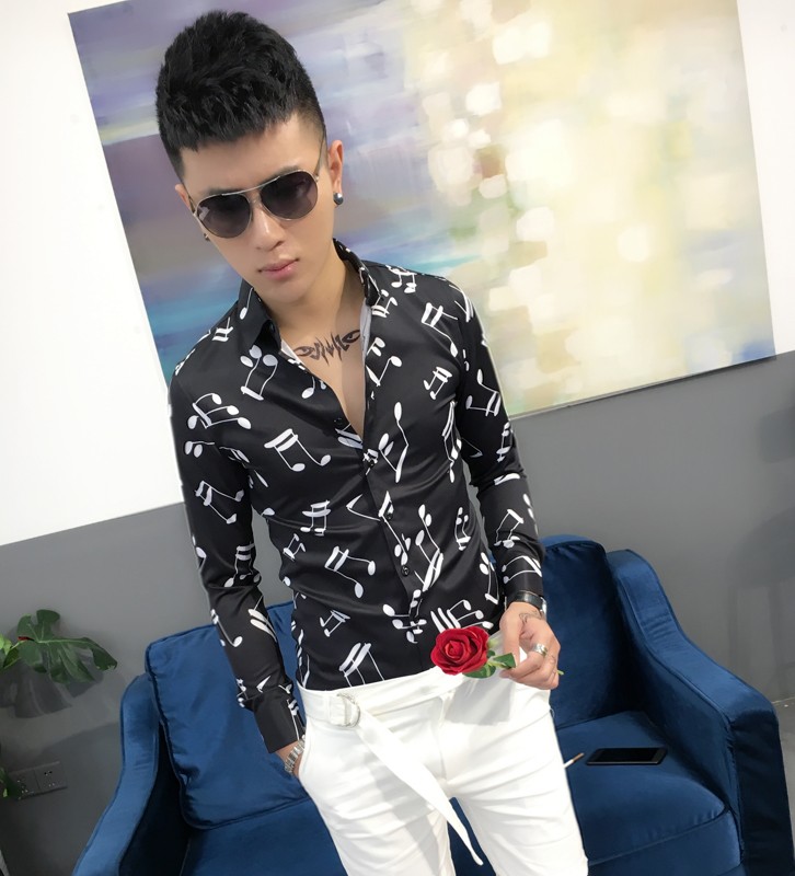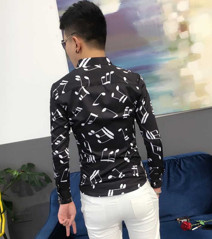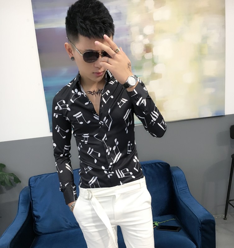 Music figure men's shirt long-sleeved new youth nightclub all-match printing shirt trend Korean version casual inch shirt handsome
