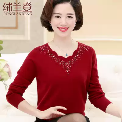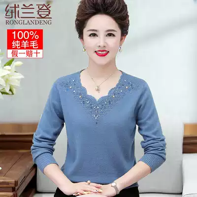 Mother sweater pure wool base shirt middle-aged and elderly cardigan women middle-aged low-collar knitwear 50-year-old women's coat