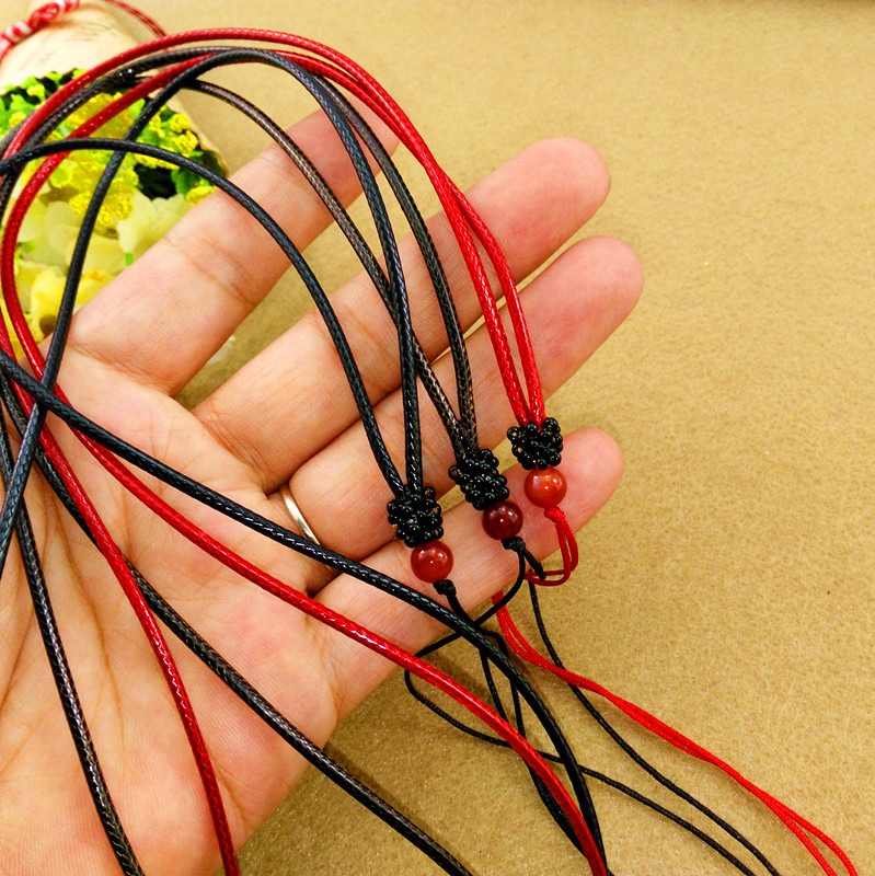 Leather rope red agate necklace rope sweater chain jade emerald beeswax pendant men and women models handmade pendant lanyard
