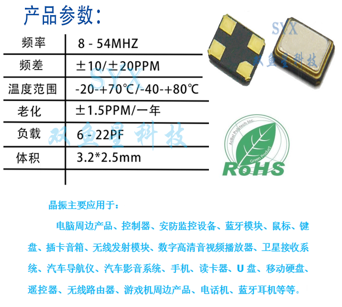 3225 Patch Passive Crystal Zhen 18432M 18432M 54M 54M 19 19 2M 22 1184M 24576MHZ