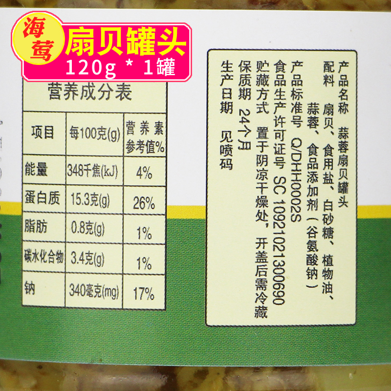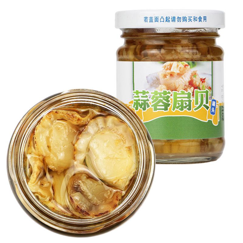 Dalian seafood garlic scallop canned food Ready-to-eat canned convenient cooked food Spicy 120g bottle Buy two get one free