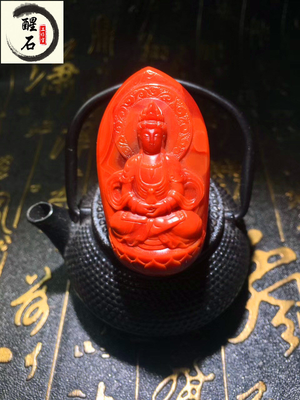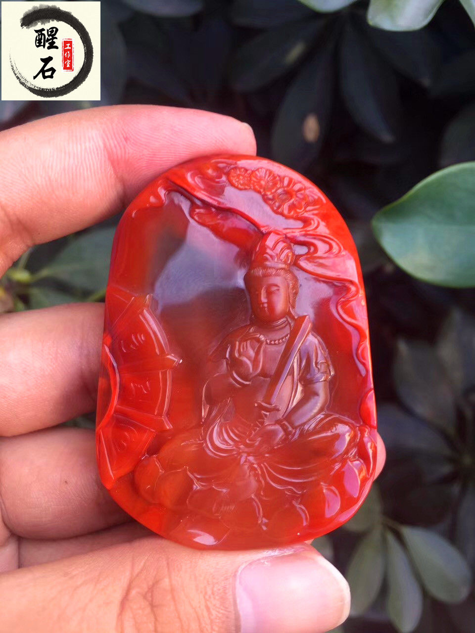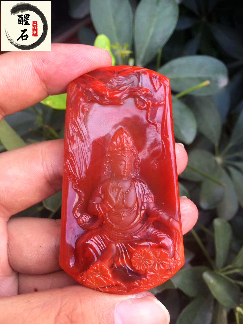 Sichuan Liangshan Natural South Red Manau pendant male pendant suwork boutique sculpted piece Buddha edge full of tomatoes red pendants