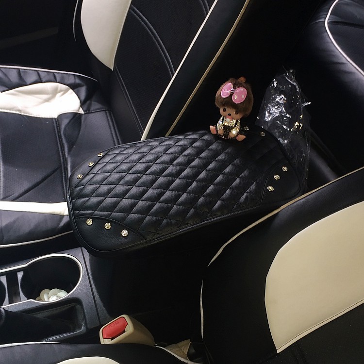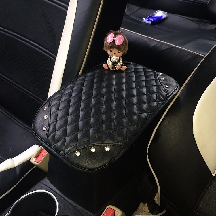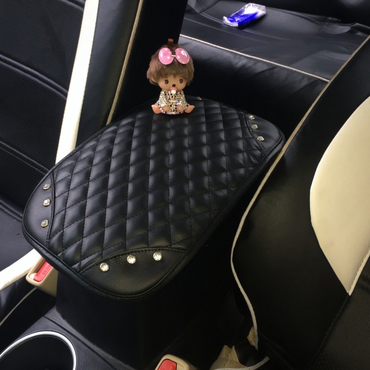 Inlaid drilling Monchic armrest pad cute water drill hand armrests Cartoon Car Interior Accessories Armrest Box Mat Lady-Taobao