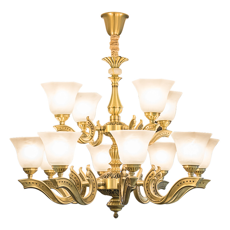 European-style all-copper chandelier duplex building villa chandelier hall lamp building middle building American-style living room atmospheric double-layer chandelier