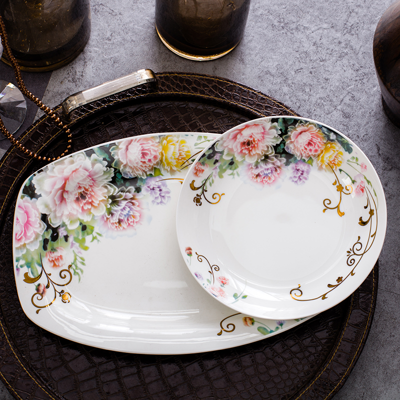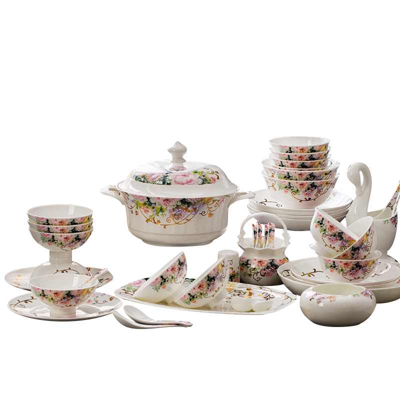 European tableware set Korean simple Court household dishes Jingdezhen ceramic high-grade bone china wedding gift