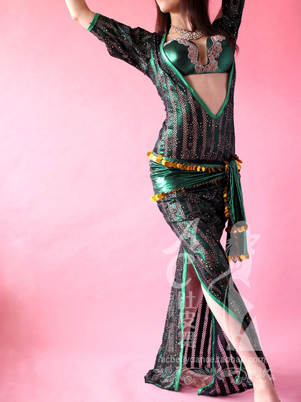 AC Belly Dance Professional Import Advanced Set Up Lace Baladi Shaabi Gown Three Sets 802 Ink Green-Taobao