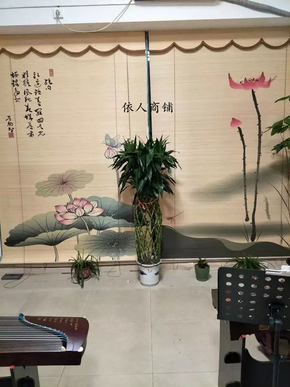 Custom bamboo curtain roller blinds curtain printed shading bamboo curtain subpartition spray painted background wall tea room lifting and hanging curtain door curtain-Taobao