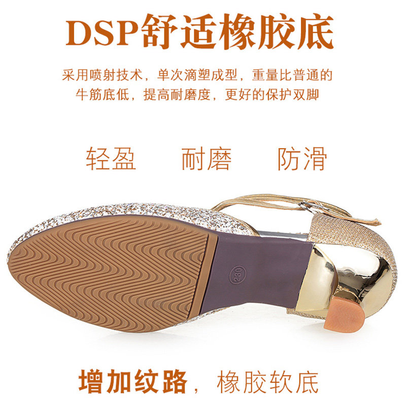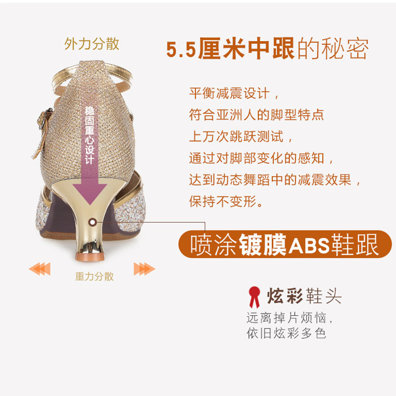 New Latin Dance Shoes Female Adults Middle Heel High Heel Soft Bottom Dance Shoes Summer Friendship Morden Dancing Shoes Square Dance