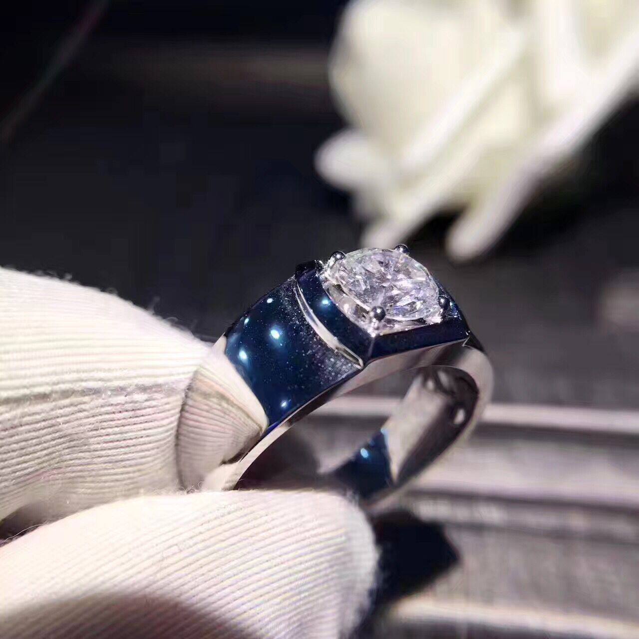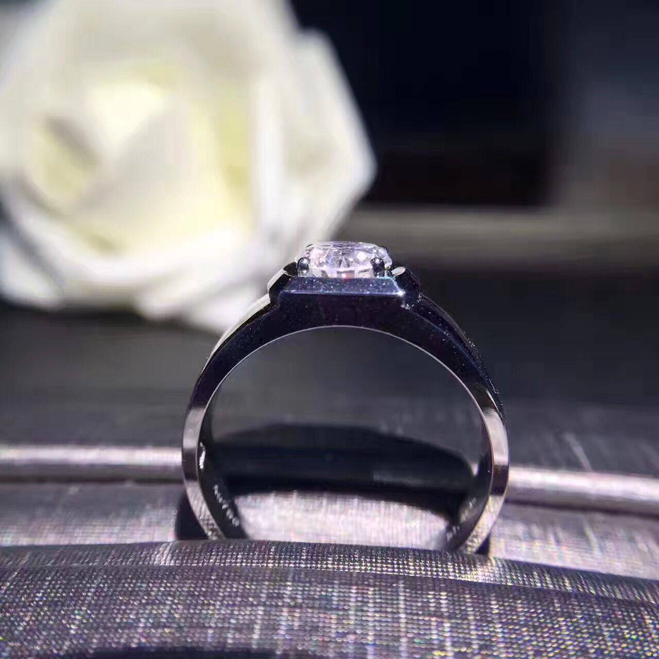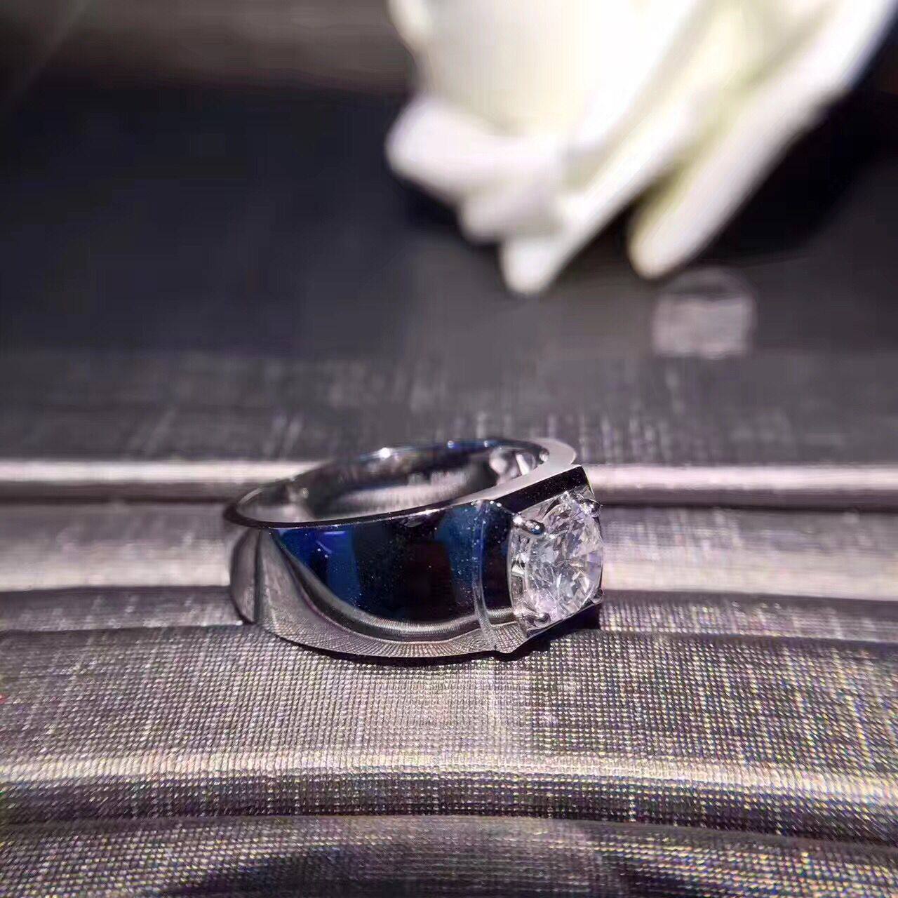 White 18K gold platinum male diamond ring 1 carat diamond male ring ring wedding engagement courting couples to the ring