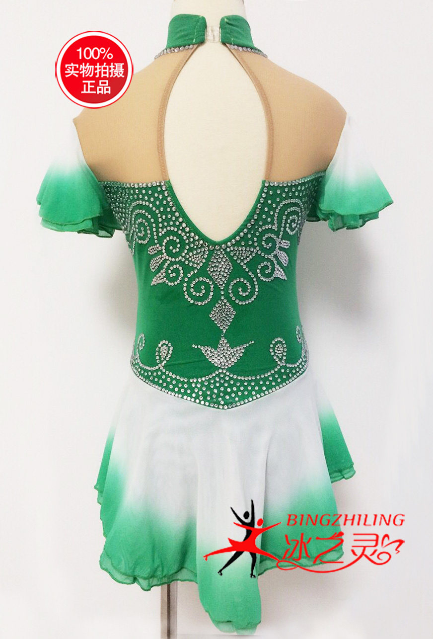 Ice spirit figure skating suit green flash diamond children's performance suit customization