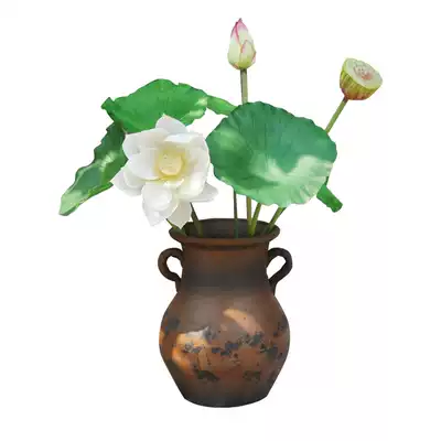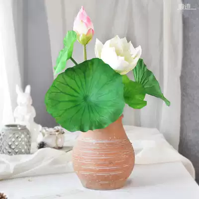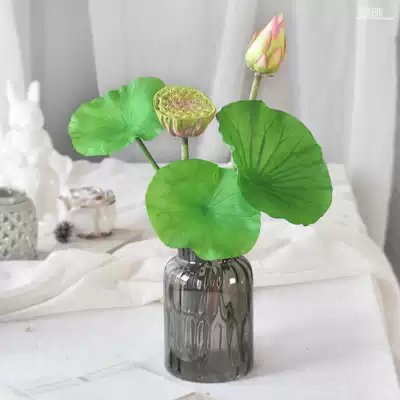 Trace simulation lotus fake flower PU feel lotus leaf showerhead Hotel clubhouse window decoration living room green plant decoration