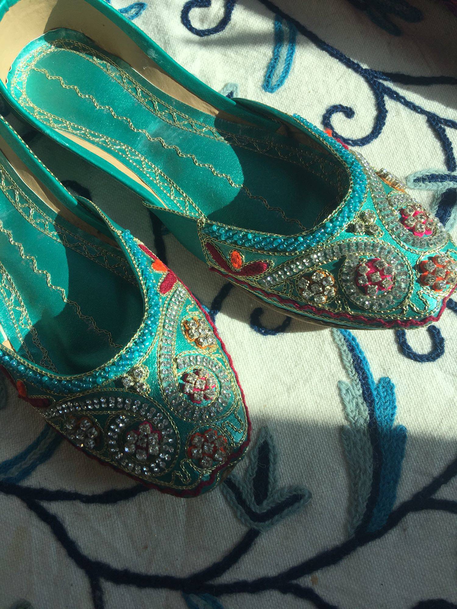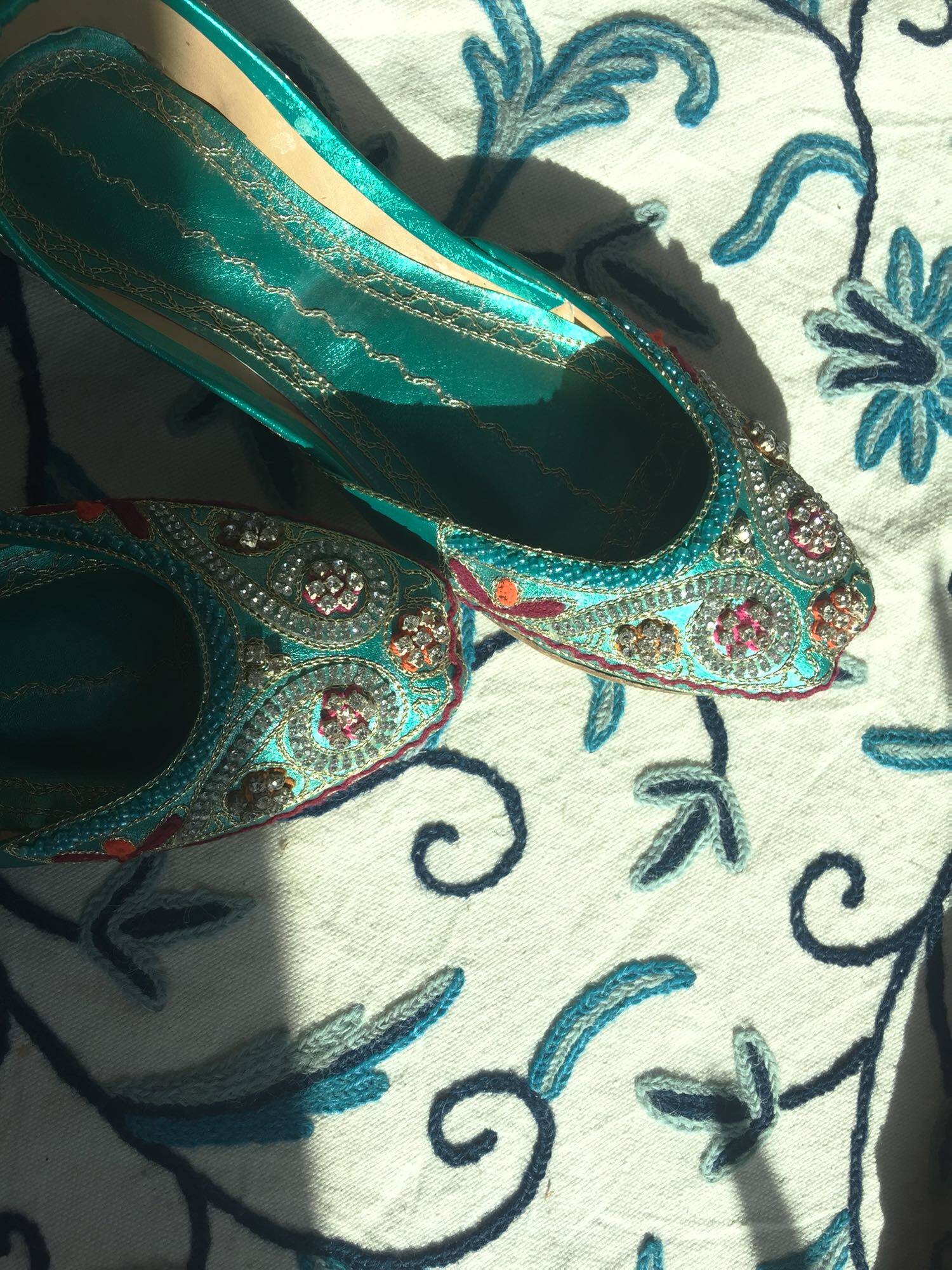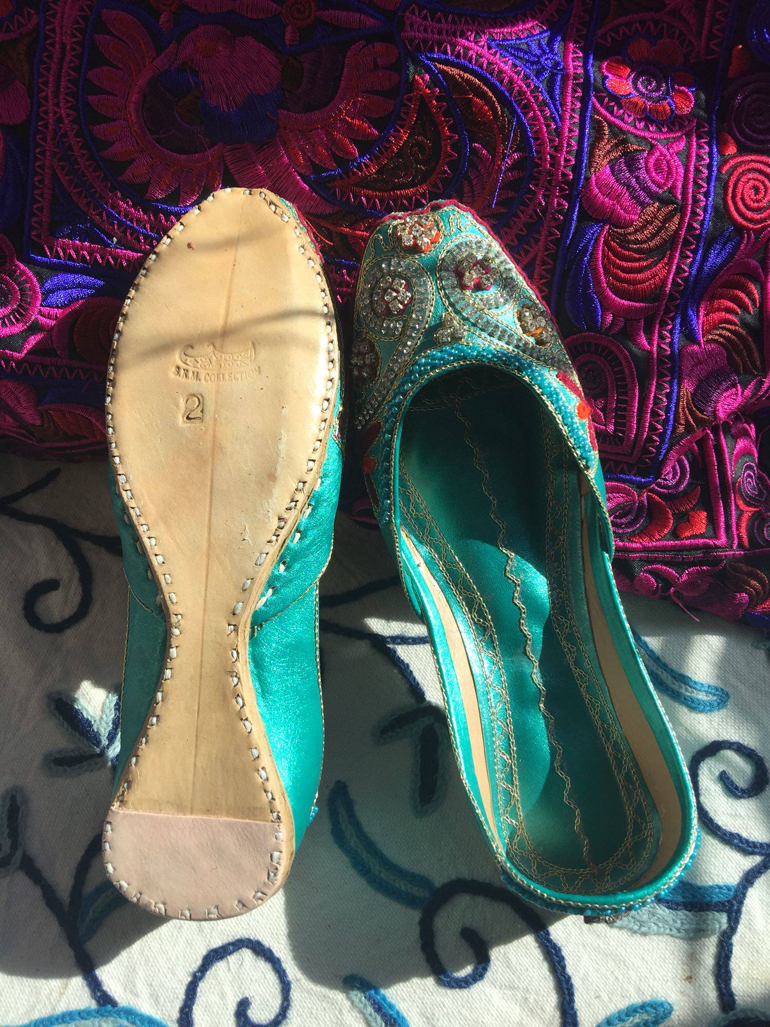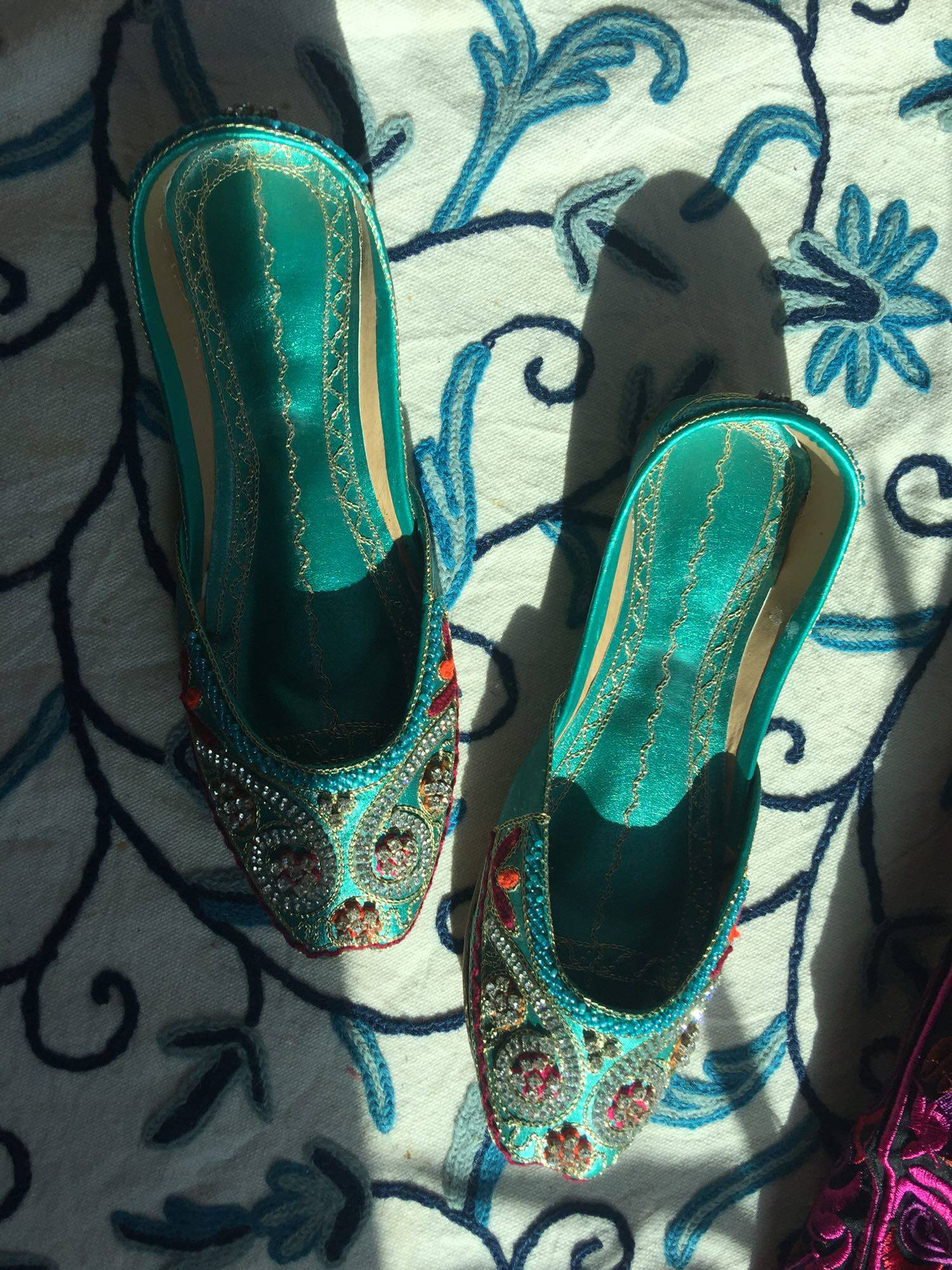 Green Plum Drill Pakistan Handmade Heavy Work Genuine Leather Embroidered Pearl Shoes Nepal Thai India Exotic