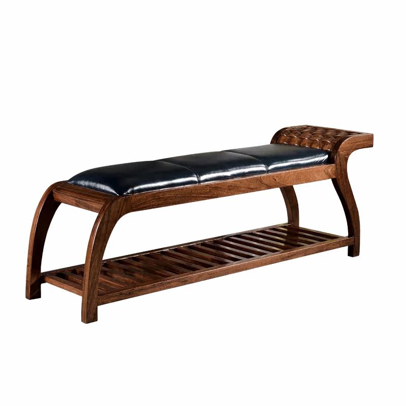 (Black Walnut Head Layer Leather) Bed Tail Stool