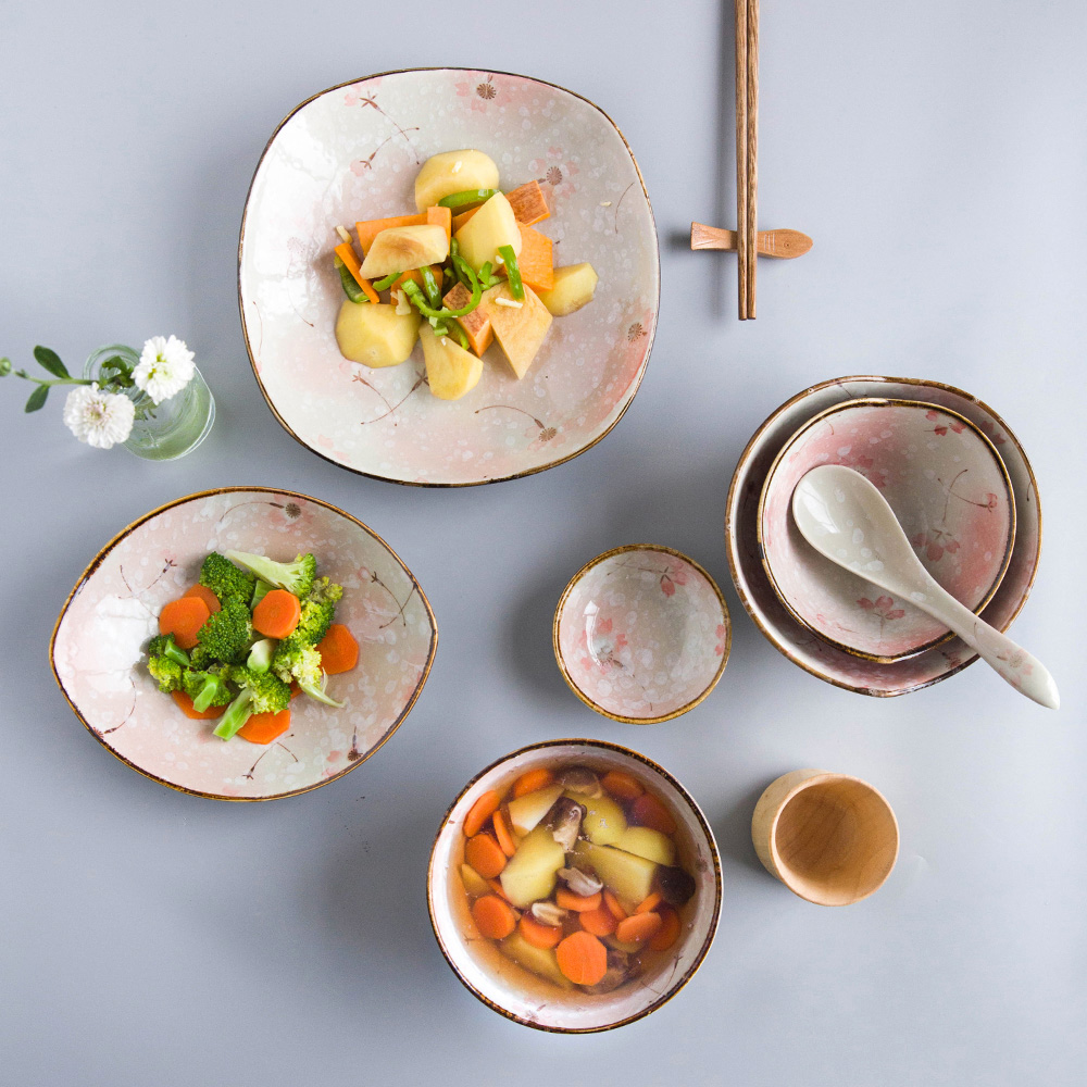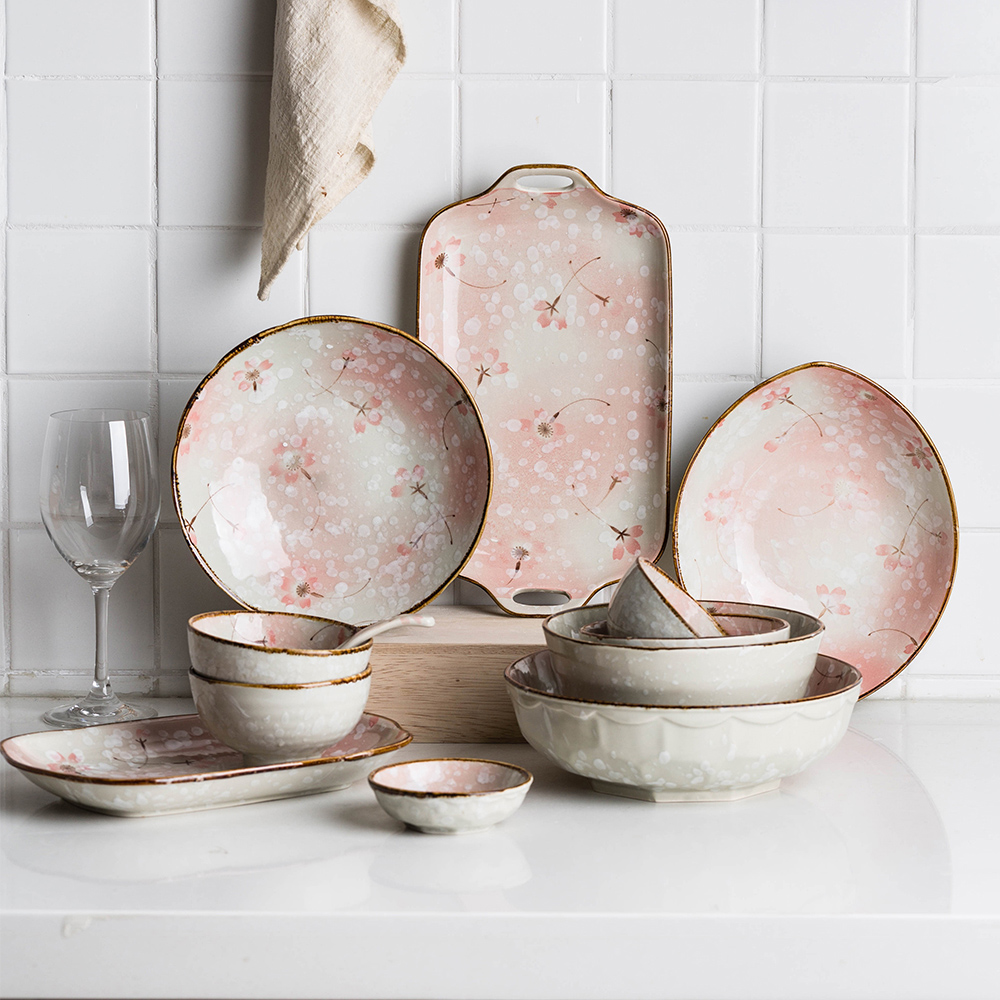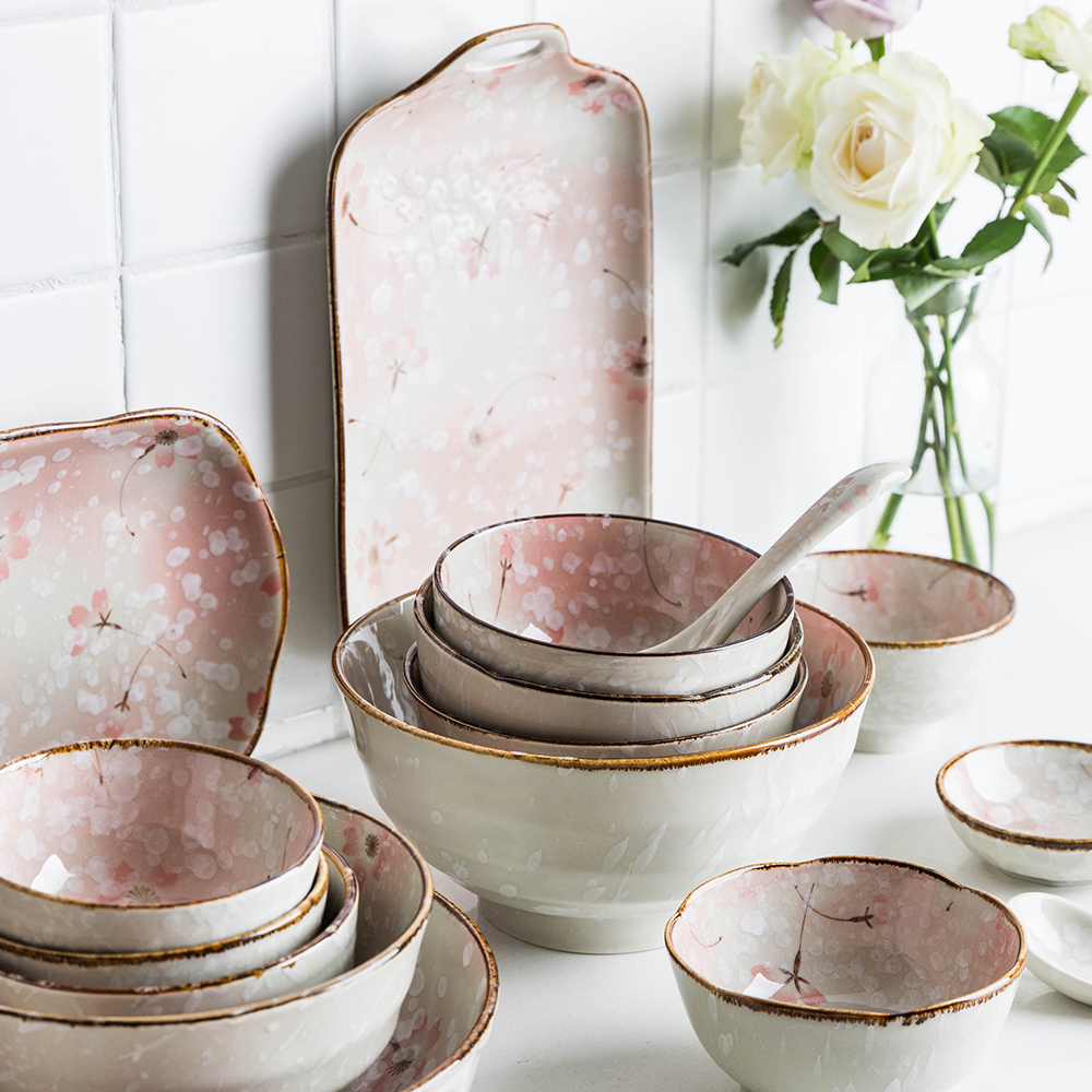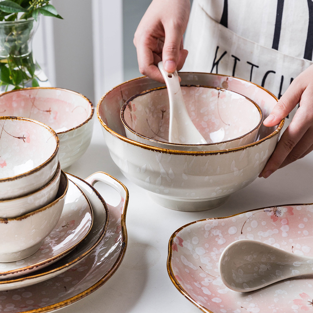 Morden Housewife Snow Cherry Blossom Bowl Day Style Cutlery Dish Ceramic Plate Soup Noodle Bowl Home Creative Rice Bowl single