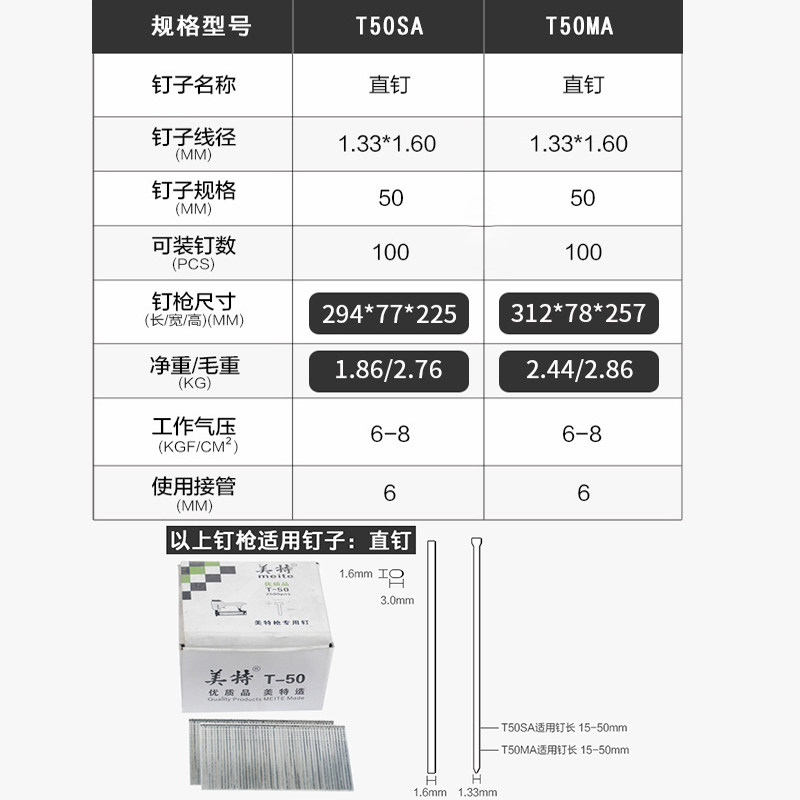 Mette Gas Nail Gun t50 Straight Nail Gun Pneumatic No-Pin f50 Furnishing Shooting Nail Gun Nail Gun Woodworking Nail Gun-Taobao