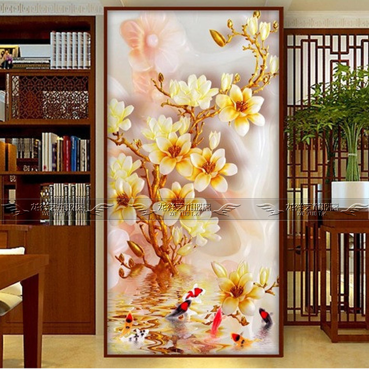 Hot Selling Boutique Minimalist Art Glass Genguan Aisle Screen Partition Deep Sculpture Artisan and Fugui jade Orchid