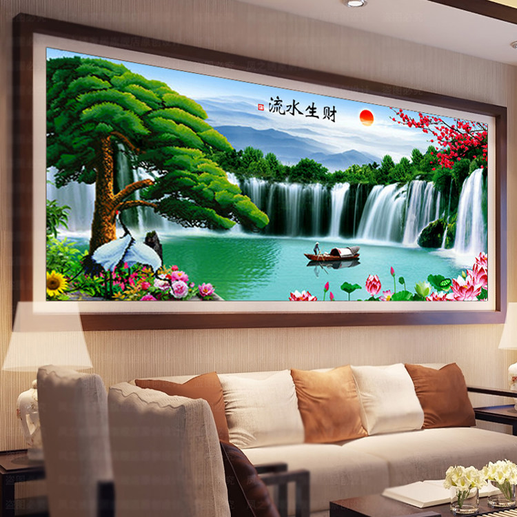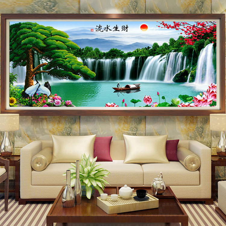 2017 new diamond painting full of diamond embroidery flowing water to make money cross stitch welcoming pine living room large landscape painting scenery