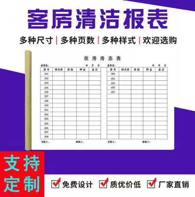 Hotel room status table Working day report customized guest accommodation registration book table Hotel check-in record book customization