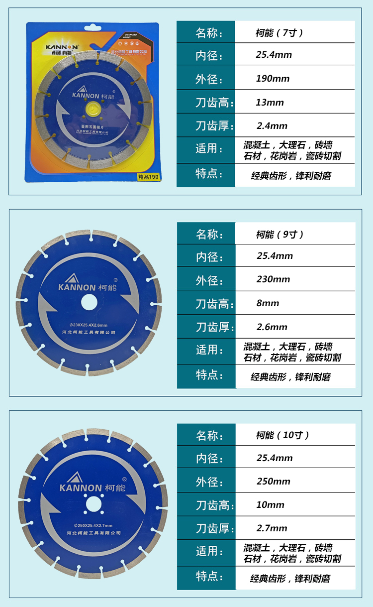 Coone 7 inch (190mm) diamond blade Cornen 9 inch (230mm) diamond saw blade Cornen 10 inch (250mm) diamond blade