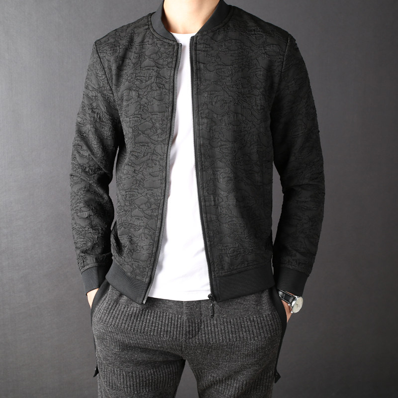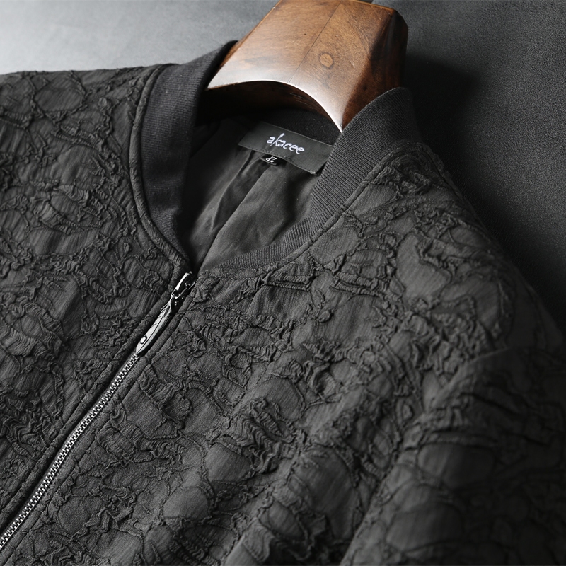 2017 new men's jacket wrinkled wave jacquard fabric jacket spring and autumn slim casual baseball uniform men