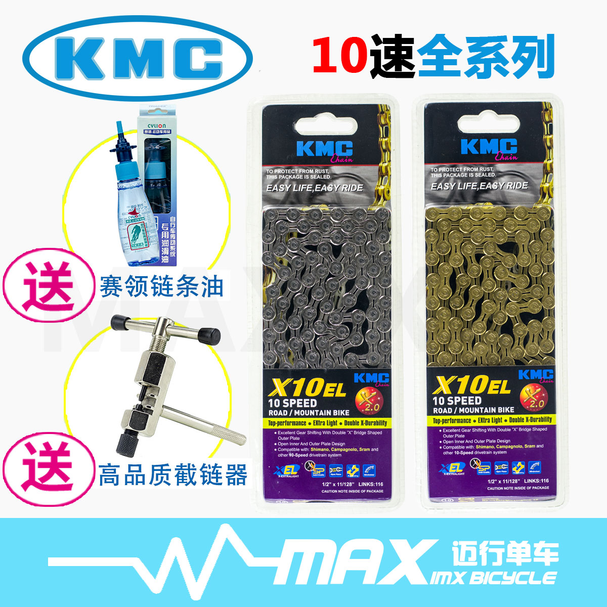 Taiwan KMC X10 10-speed hollow chain mountain bike road bike lightweight hollow chain boxed