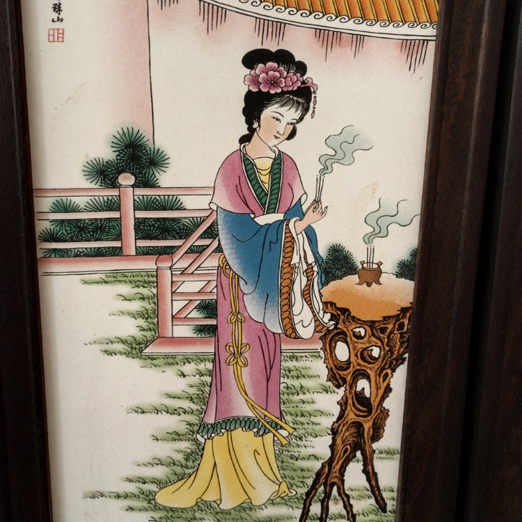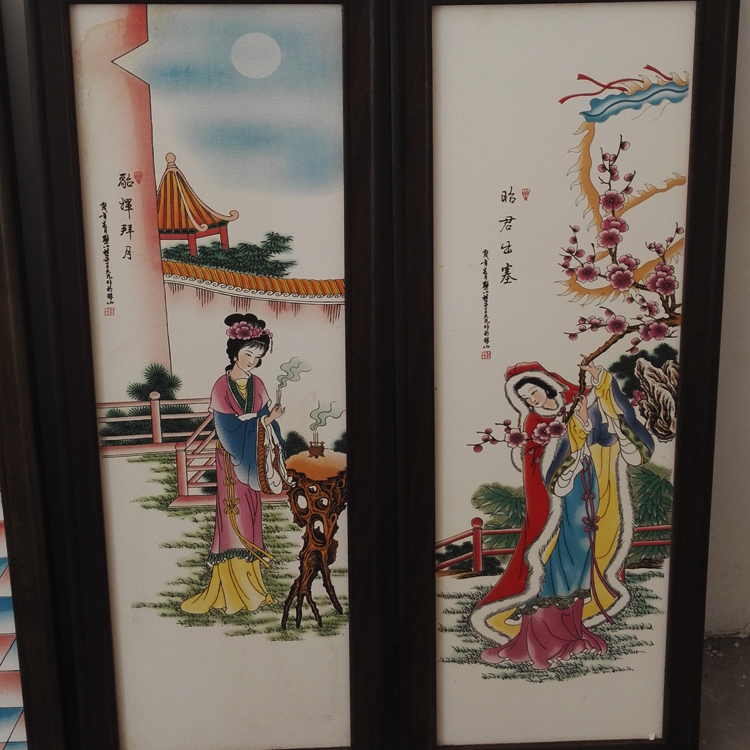 Antique collection Jingdezhen pottery porcelain plate painting antique Old four beauty living room decoration ornaments 4