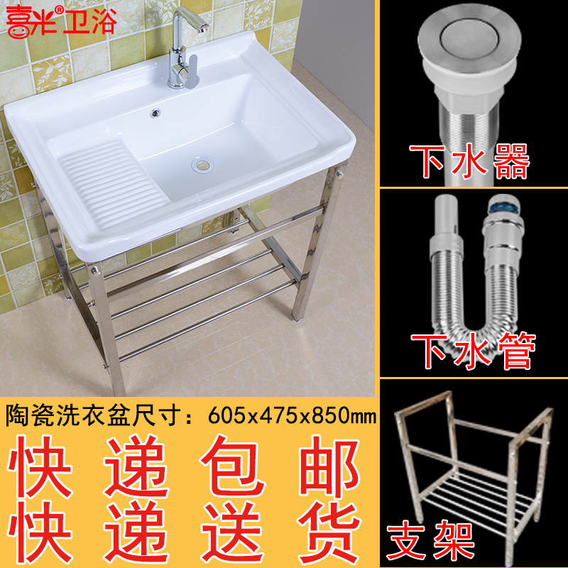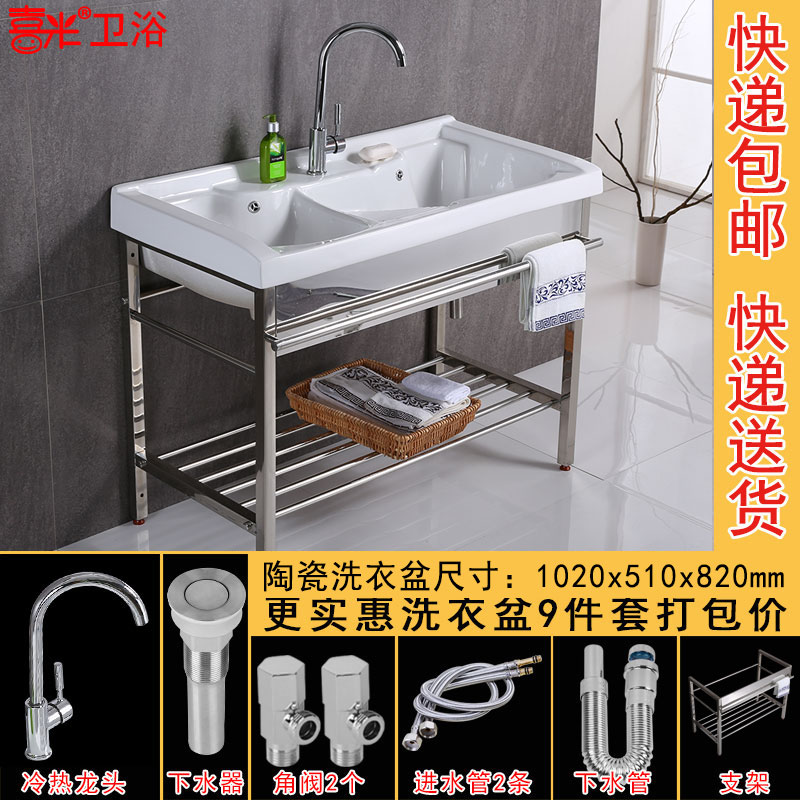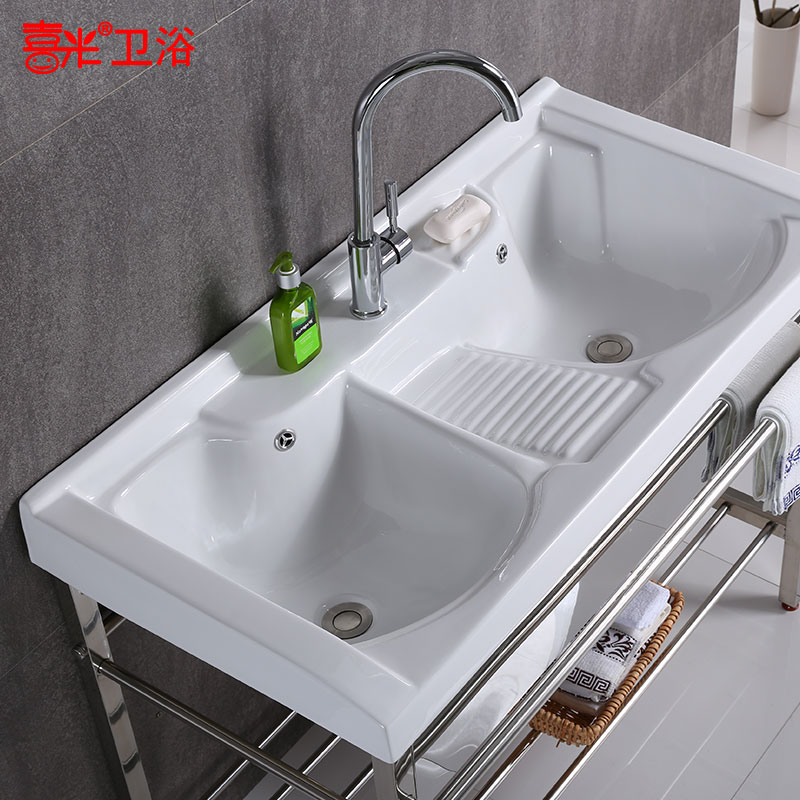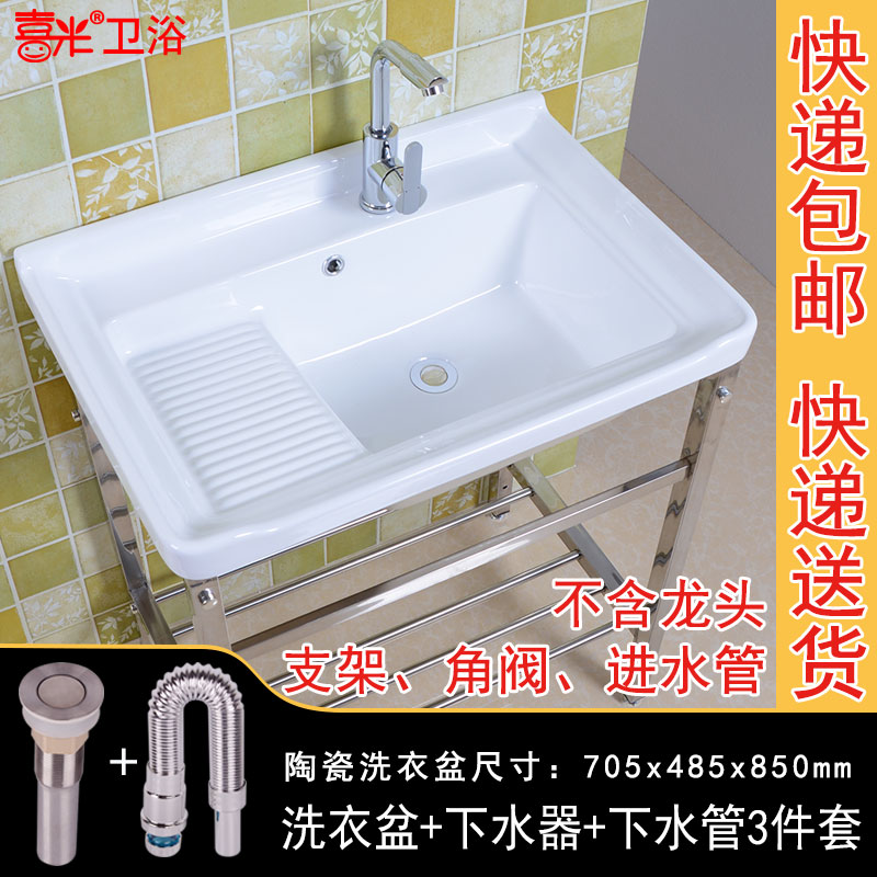 Balcony floor-to-ceiling stainless steel bracket wash basin laundry pool ceramic with washboard laundry tank on-stage washbasin
