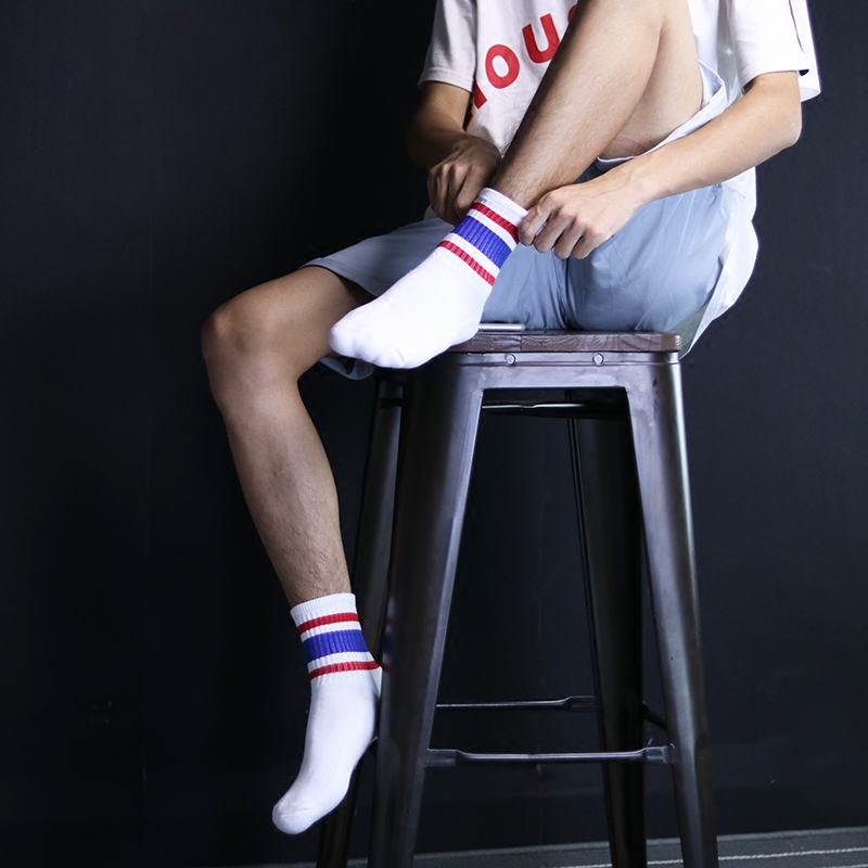 Autumn and winter men's tube socks Towel bottom terry thickened stripes sports pure cotton sweat-absorbing shockproof fashion white socks tide