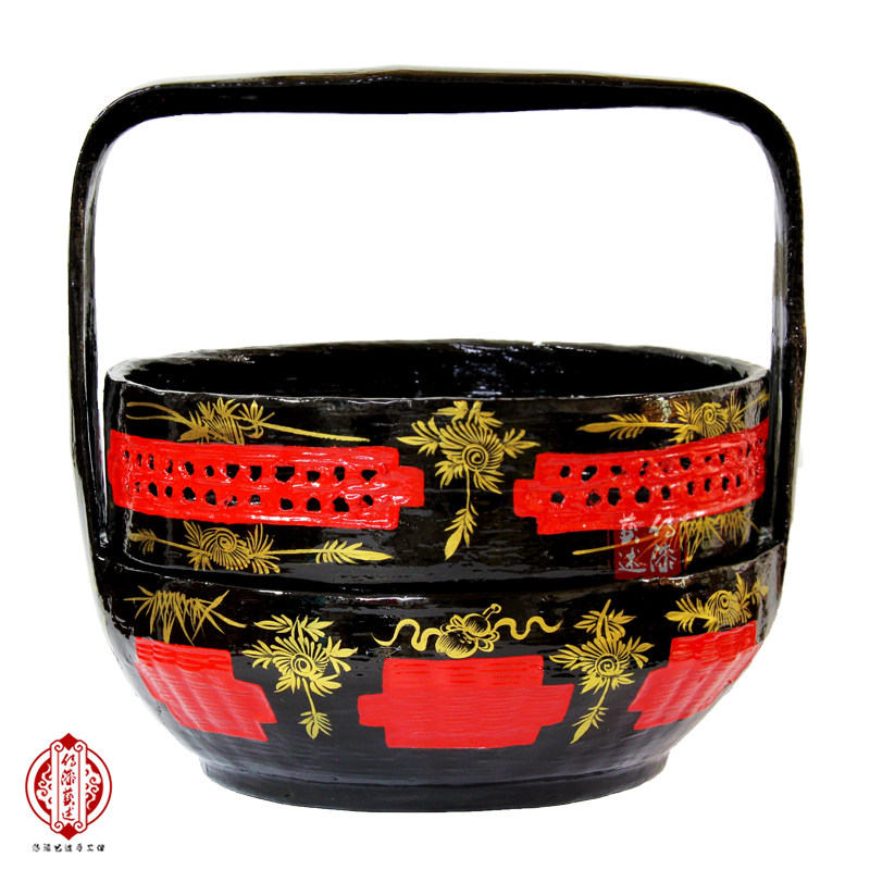 Yongchun lacquer basket folk handicraft hand-painted flower and bird picture large lacquer bamboo wedding jewelry basket burning incense basket bye