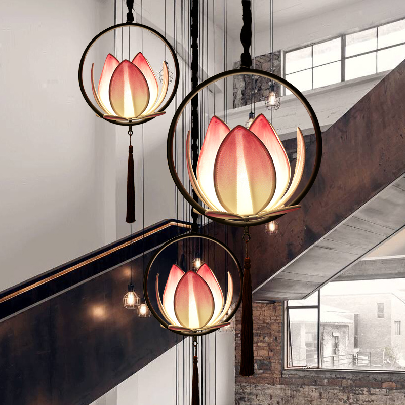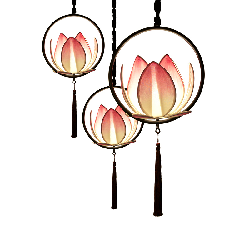 New Chinese cloth art hanging light imitation ancient classic tea room dining room Aisle Genguan Lights Retro China Wind Lotus Zen Imaginary Lamp