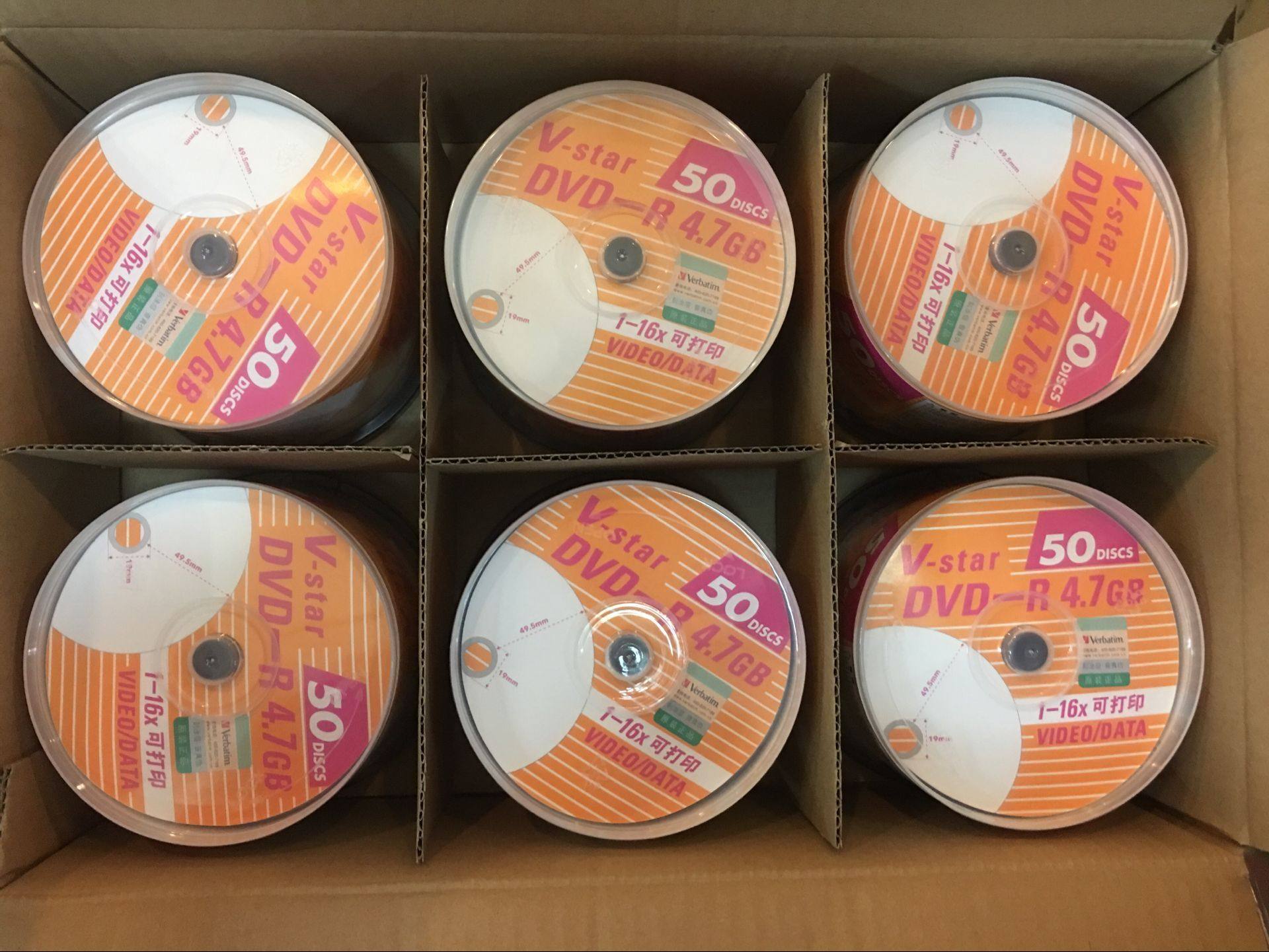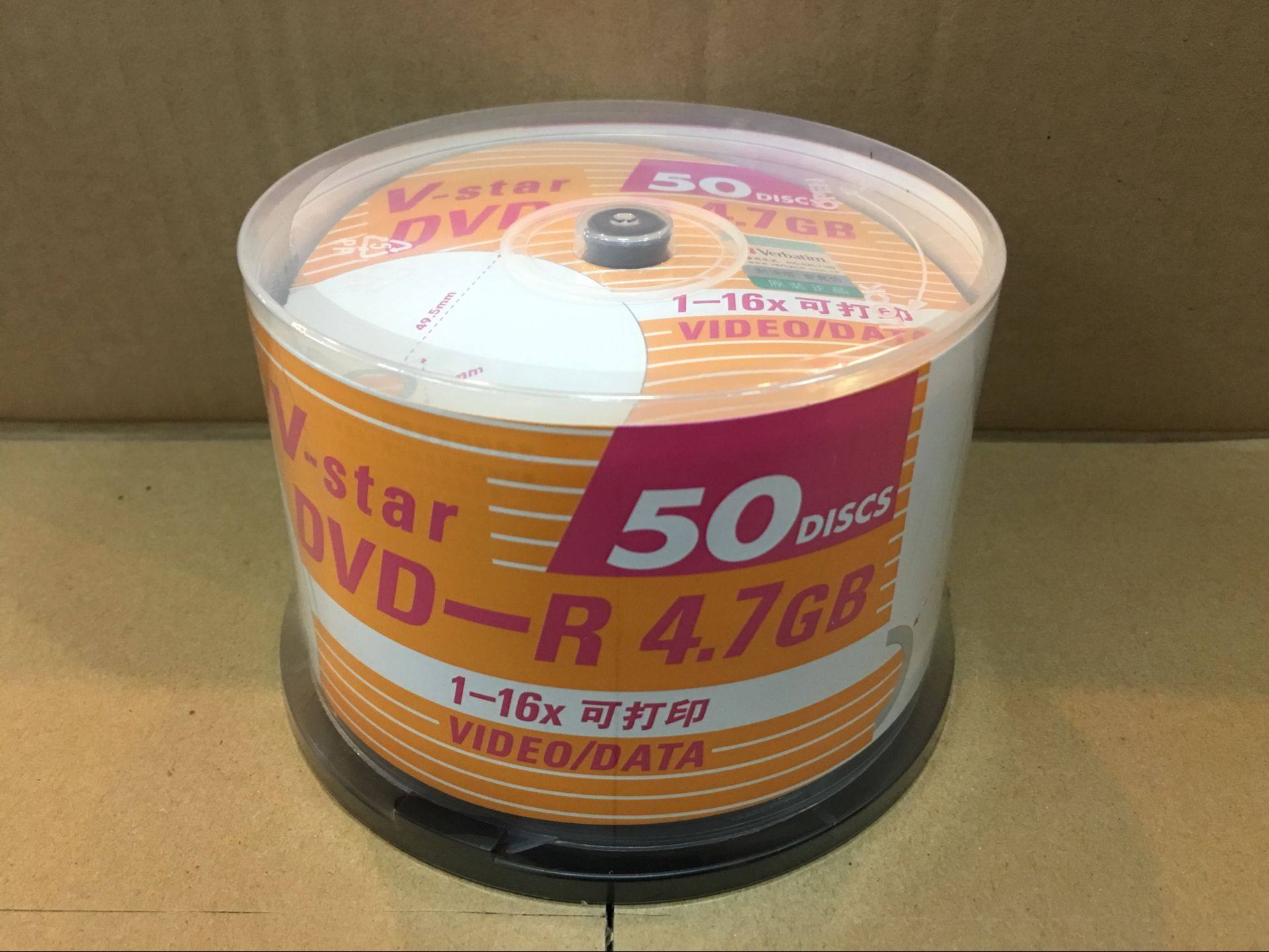 Verbatim's brand V-Star series 50-piece barrel printable DVD-R blank burning disc burning disc