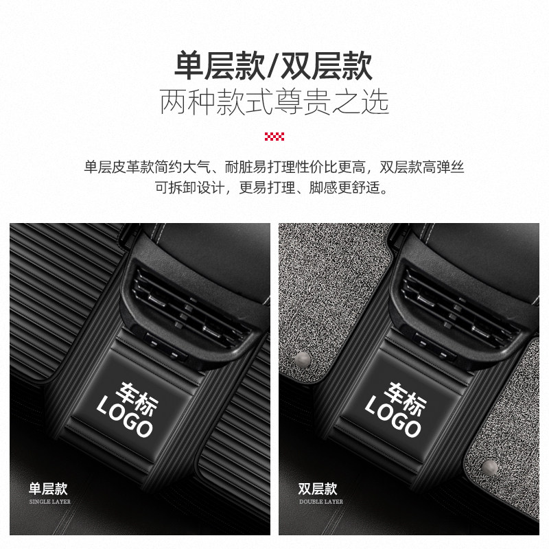 (If the display model does not match, you can consult online customer service 99% of the models are customizable) (Single-layer leather with logo) → (Single-layer car logo) Black Black Line Horizontal Stripe (Single Layer Car Logo) Coffee Coffee Line Horizontal Stripe (Single Layer Car Label) Beige Stripe (Single Layer Car Label) Burgundy Red Line Stripe (Single Layer Car Logo) Black Gold Wire Stripe (Single Decker Car Logo) Black Red Line Stripe (Silk Ring Leather Double Detachable Model with Car Logo) → (Double DeckEr Car Standard) Black Black Line Horizontal Stripe + Black Silk Circle (Double Decker Car Standard) Black Black Line Horizontal Stripe + Gray Black Silk Circle (Double Decker Car Standard) Burgundy Red Line Horizontal Stripe + Red Circle ( Red Silk Circle ( Double-layer car logo) Coffee color coffee line horizontal stripe + coffee color silk circle (double decker car standard) beige beige stripe + mi curry wire circle (double decker car standard) black red line stripe + black silk circle (double layer car standard) black gold wire stripe + gray black wire ring (double layer car logo) black gold wire stripe + black wire circle (double deck car logo) black red line horizontal stripe + black red wire ring (60% owners choose special package) mat with tail box pad ↓ ↓ ↓ ↓ package 1 - single layer foot pad + flat main mat (take note color default with car logo) Package 2 —— Single-layer foot pad + fully enclosed trunk pad (take a note color with a car logo by default) Package 3 - Double layer foot pad + Tile main mat (take a note color with a car logo by default) Package 4 - Double layer foot pad + Full enclosed trunk pad (take a note color with a car logo by default)