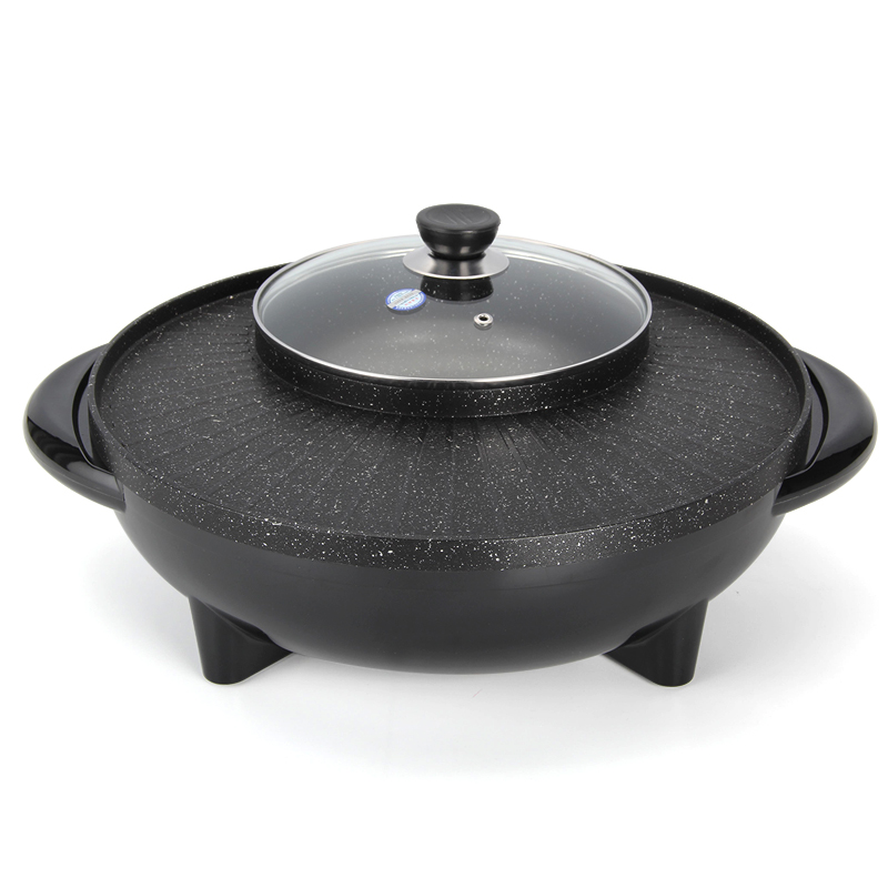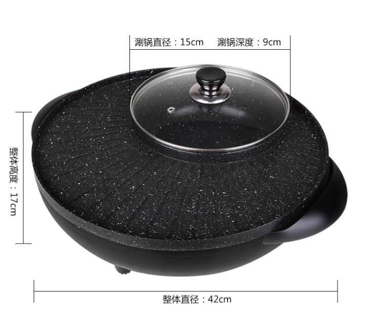 Hot pot barbecue integrated pot household multifunctional Korean roasting smokeless roasting machine iron plate electric hot pot electric pot