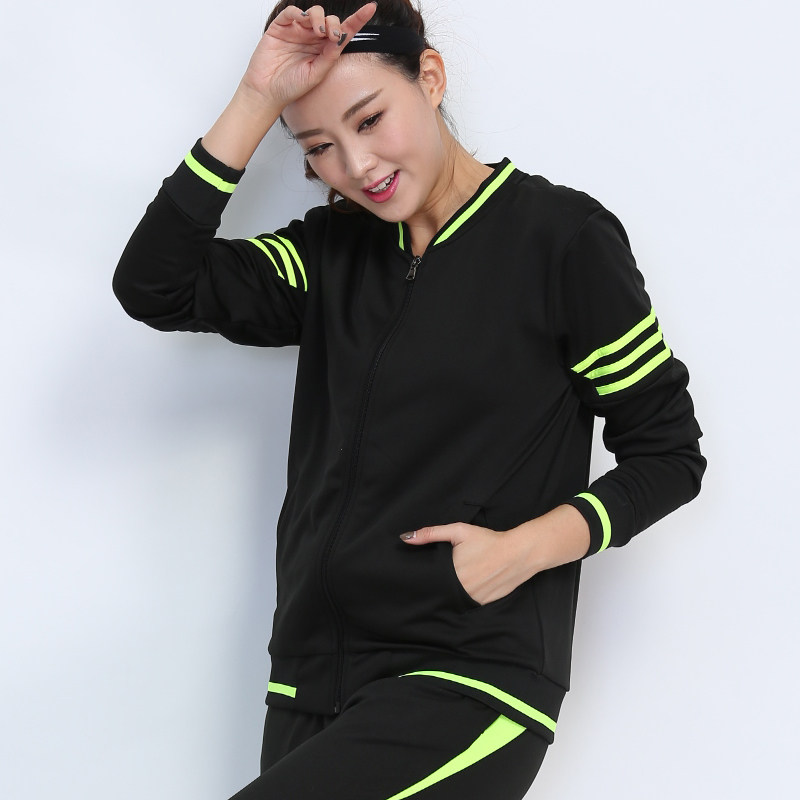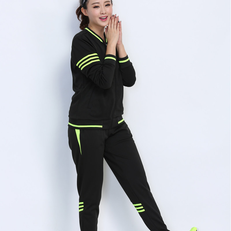 Plus velvet zipper sports suit women's autumn and winter leisure set body two-piece set student three-bar long-sleeved sportswear