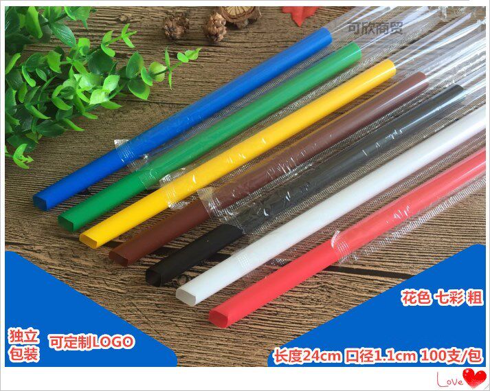 Black thick straw 24cm long and 11mm diameter disposable pearl milk tea coconut fruit plastic independent packaging
